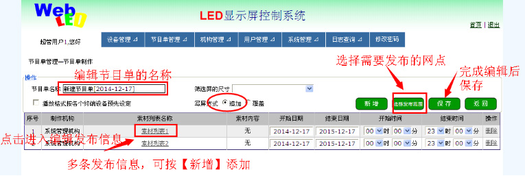 1、本系统用于集中管理及发布多个屏的显示内容;