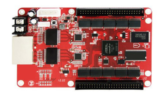 目前具有这两种特性的控制系统中有一种是使用仟兆网口+接收卡(带有存储芯片)。这种方式由于接收卡上的存储芯片容量很小制约了其异步功能的发挥,只能存储很短的视频或几幅图片,实用性不够。
